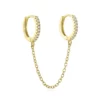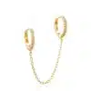 Habillez votre oreille avec ces magnifiques Creoles Doubles Zirconium Chaine Argent Plaqué Or ! Composées de deux anneaux de 12mm de diamètre sertis de zirconium blanc et reliés par une fine chainette en plaqué or gold filled.