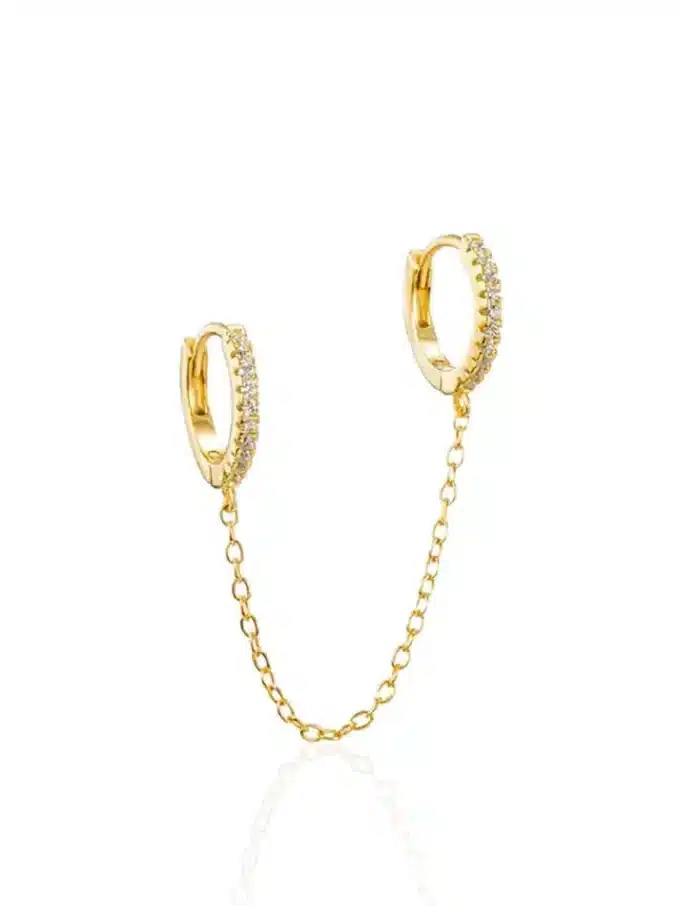 Créoles Doubles avec Chaîne : L’Allure Moderne et Glamour