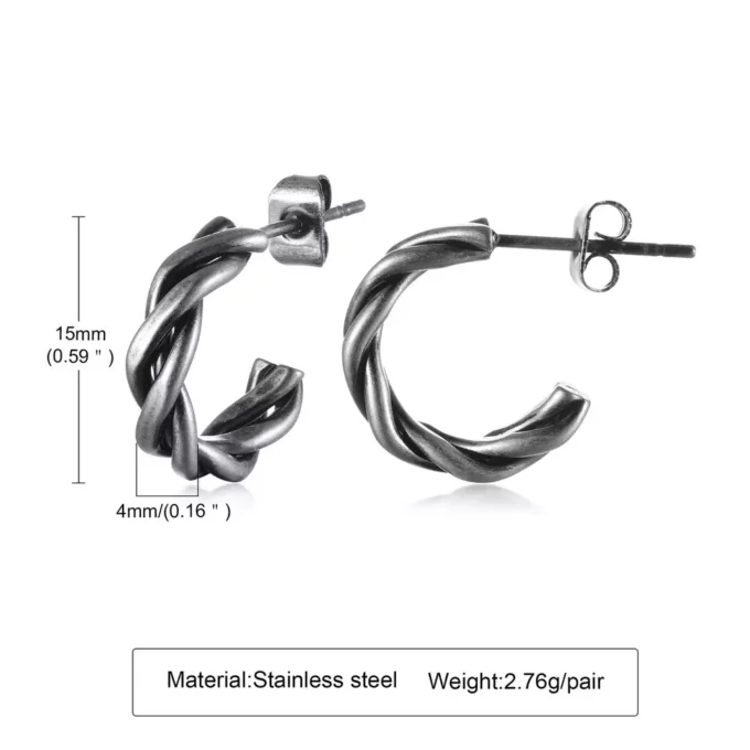 Optez pour cette paire de Creoles Homme Acier Inoxydable 15mm torsadées originale et tendance qui saura marquer votre différence et apporter un style bien à elle à votre look! Voici un petit anneau torsadé, à l’oreille d’un homme autant qu’à celle d’une femme.