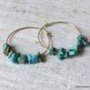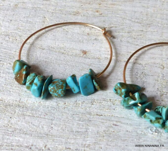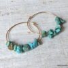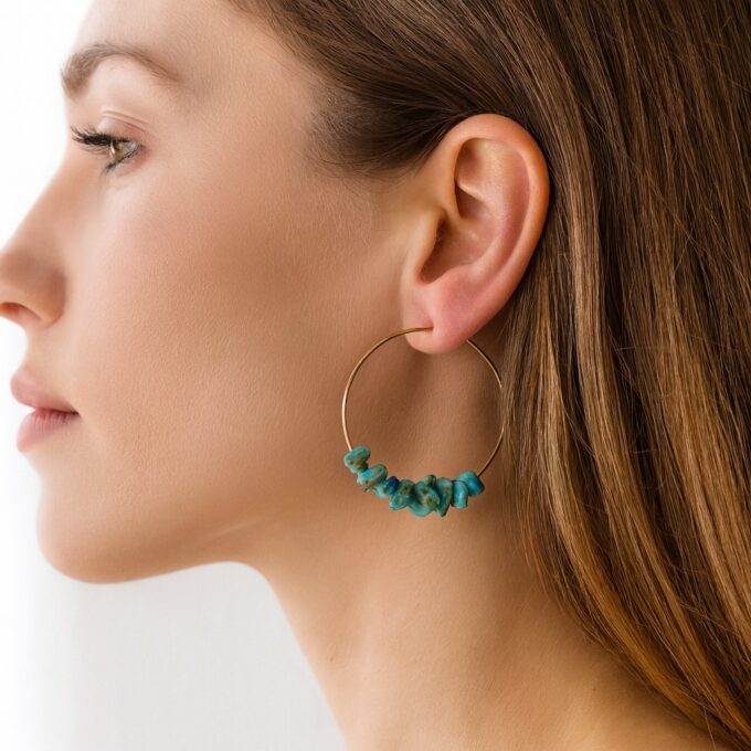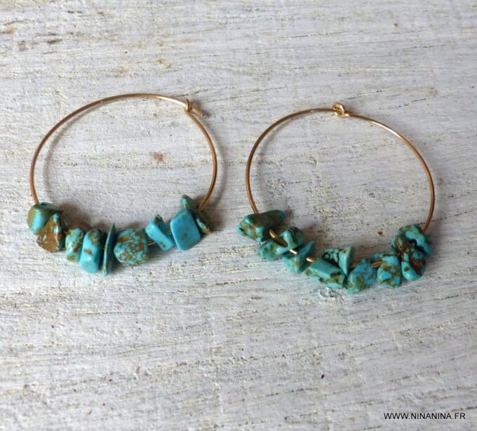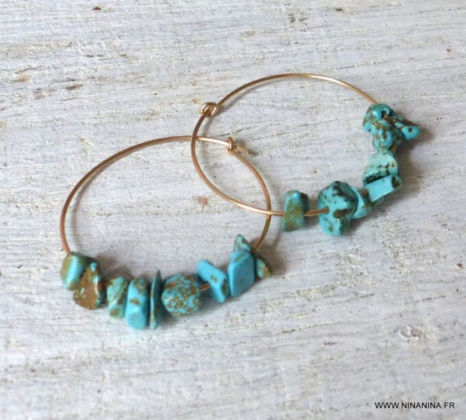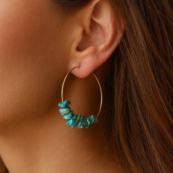 Boucles d’oreilles créoles plaqué or et pierre turquoise – Bijou lumineux et apaisant