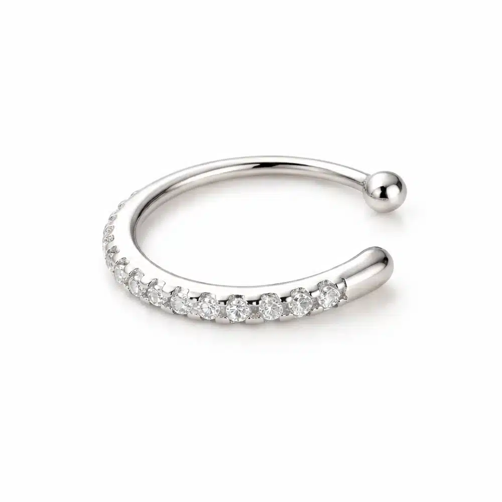 Les petits oxydes de zirconium soigneusement sertis offrent une brillance proche du diamant tout en conservant une élégance légère. Leur alignement fin crée un effet précieux qui sublime l’oreille sans excès.