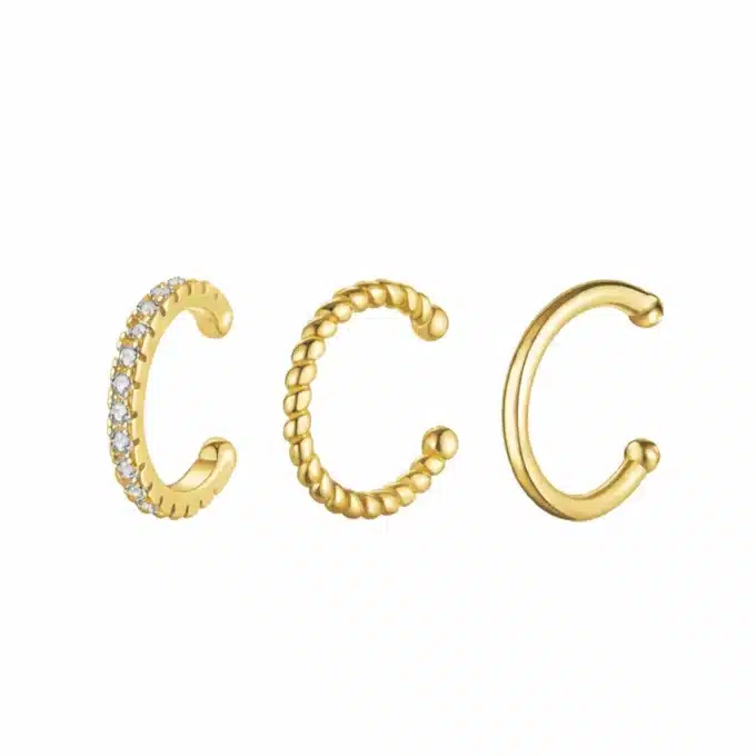 L’ear cuff doré est l’accessoire idéal pour habiller l’oreille sans engagement. Ce lot se compose de trois bijoux d’oreille dépareillés, chacun avec un design distinct, permettant de varier les styles selon vos envies.