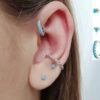 L’accumulation de bijoux est tendance et les boucles d’oreilles ne dérogent pas à la règle ! La nouveauté de la saison ? Le port de mini boucles d’oreilles en accumulation le long du lobe : en double, en triple, en mix and match… La mode des piercings multiples permet désormais à certaines de les multiplier.