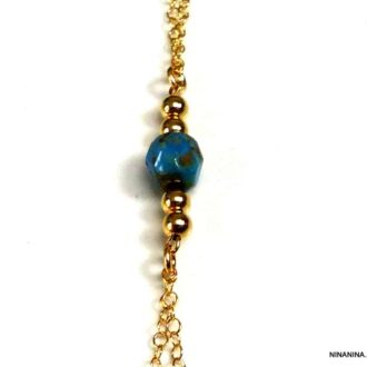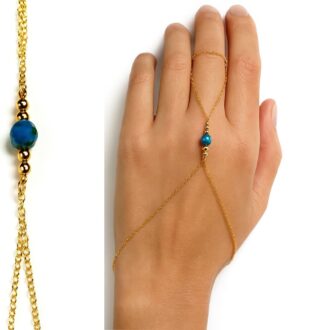 Bague et Bracelet Swarovski doré – Chaine de main artisanale plaqué or cristal mauve ou bleu zircon