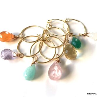 Créoles dorées pendentif goutte en pierre naturelle – Boucles d’oreilles artisanales chic et colorées