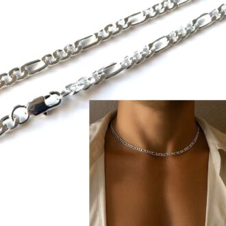 Chaine homme plaqué argent homme fine maille figaro 50 cm ou 60 cm