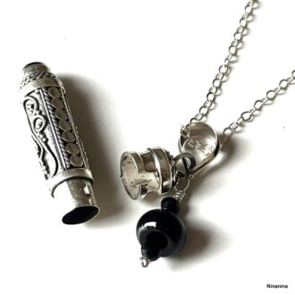 Pendentif Urne Funéraire Défunt – Collier Artisanal Chaine Argent 925 Et Onyx Noir Véritable