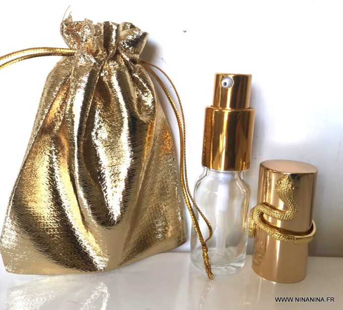 Votre flacon verre avec pompe sera livré dans une ravissante pochette en tissu doré prête à offrir. D’autre part, nous vous offrons la possibilité d’envoyer les cadeaux directement chez le destinataire de votre choix en lui glissant un petit message personnalisé.