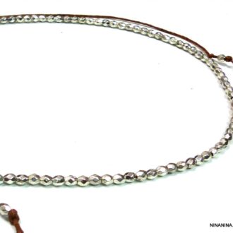 Le headband femme en perles métal argenté de forme rhombus allie élégance géométrique et brillance subtile.