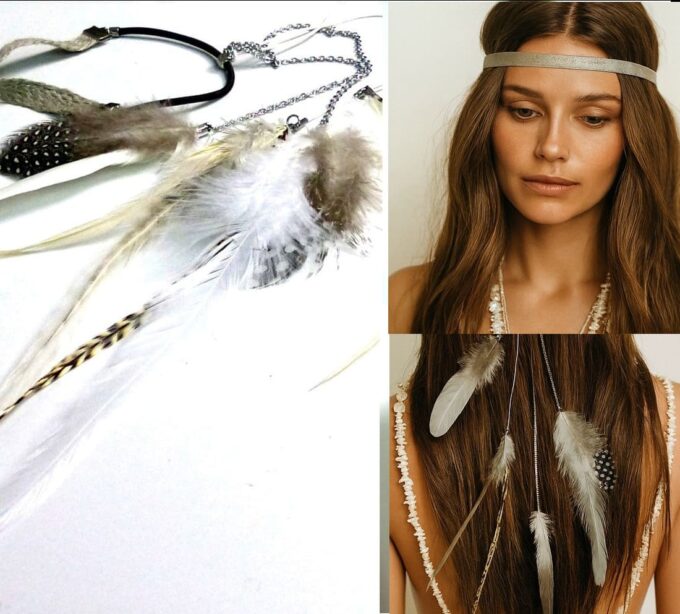 Le headband bohème chic en cuir et plumes naturelles est bien plus qu’un accessoire : c’est un symbole de liberté, d’élégance et de féminité.