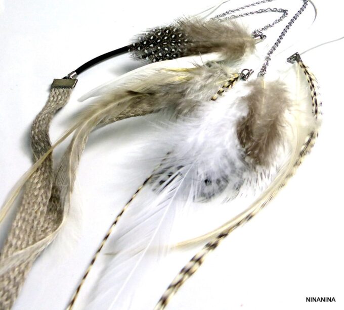 Headband bohème chic : le mariage réussi du cuir et des plumes naturelles