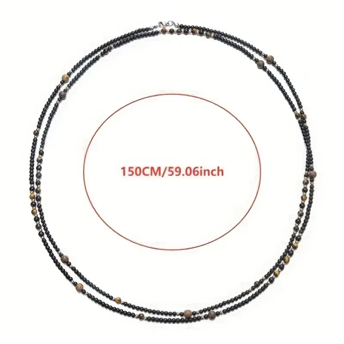 Exprimez votre style avec ce long collier bohème chic pour homme, composé de perles noires et marron finement travaillées. Avec ses 146 cm de longueur, il peut se porter de différentes façons : en sautoir, en double tour autour du cou ou même enroulé plusieurs fois autour du poignet comme un bracelet multi-rangs.
