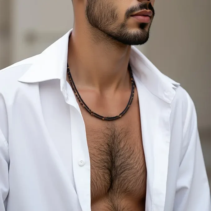 Un collier long et polyvalent, symbole de style bohème chic masculin