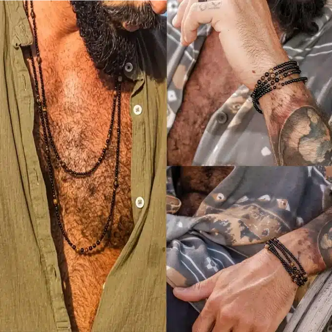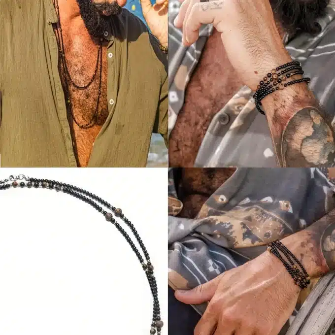 Ce bijou style bohème chic s’accorde parfaitement avec une chemise ouverte, un t-shirt décontracté ou un look plus travaillé. Un bijou unique pour les hommes en quête d’originalité et de caractère.