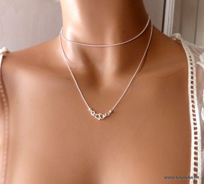 Portez cette jolie chaine argent femme seule pour un look minimaliste ou en superposition avec d’autres colliers Ninanina; Astuce Ninanina : Vous pouvez également faire deux tours et il deviendra un collier court ou l’enrouler plusieurs fois autour de votre poignet et le transformer ainsi en collier bracelet ultra tendance ou encore la mettre autour de vos hanches et la transformer ainsi en chaine de taille tendance et sexy! Un bijou multifonctions dont vous ne pourrez plus vous passer !