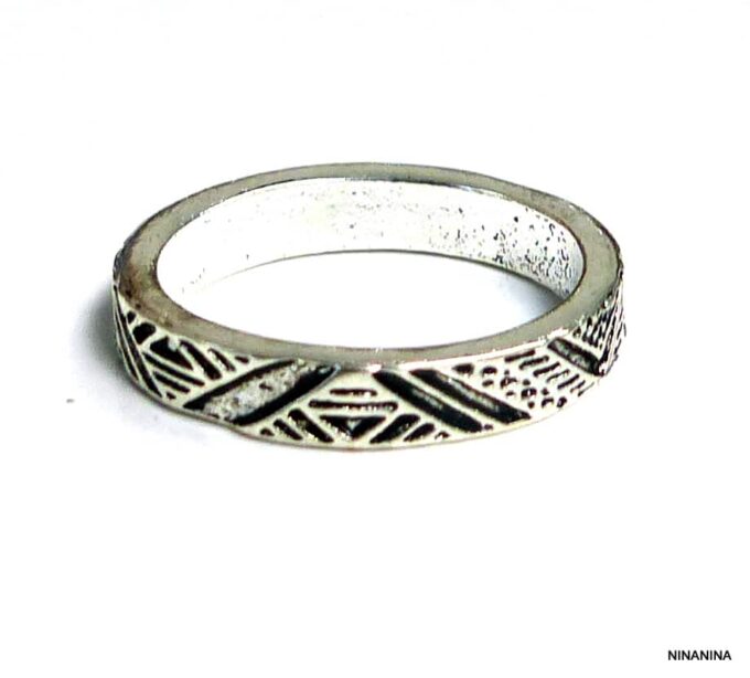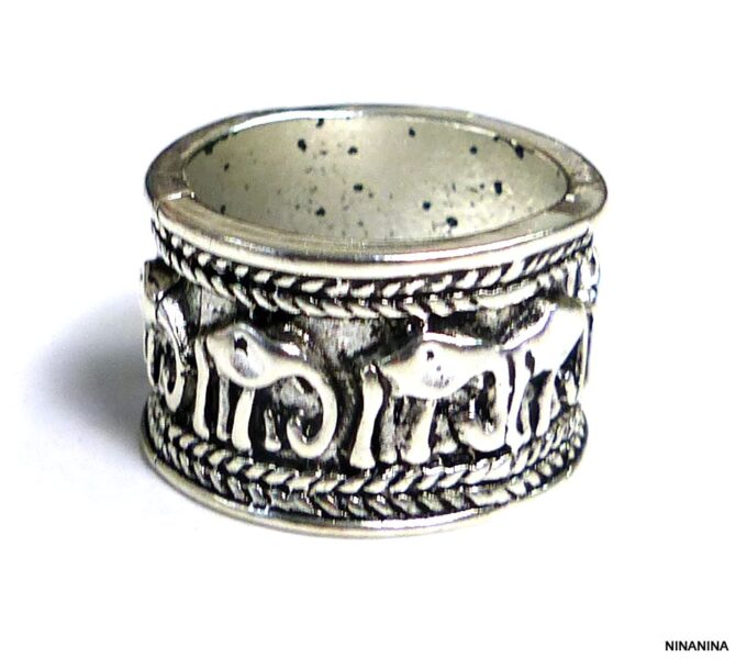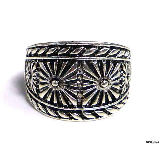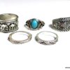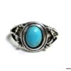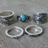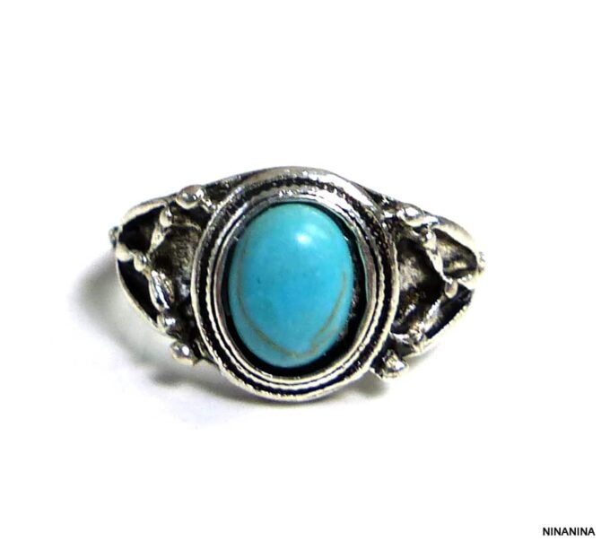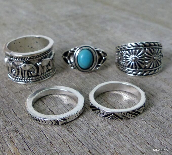 Lot de 5 bagues bohème en métal argenté vieilli et résine turquoise. Tailles : 50, 52 et 54;