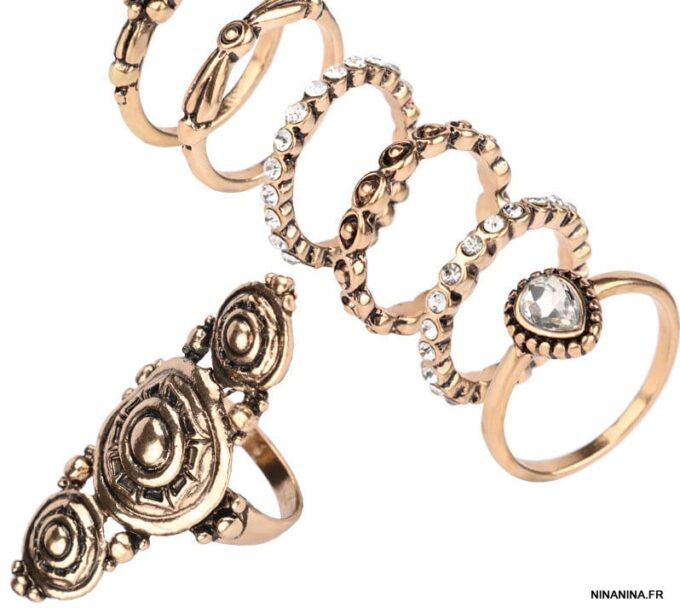 Soyez le premier à laisser votre avis sur “Lot de 7 bagues bohème en métal doré”