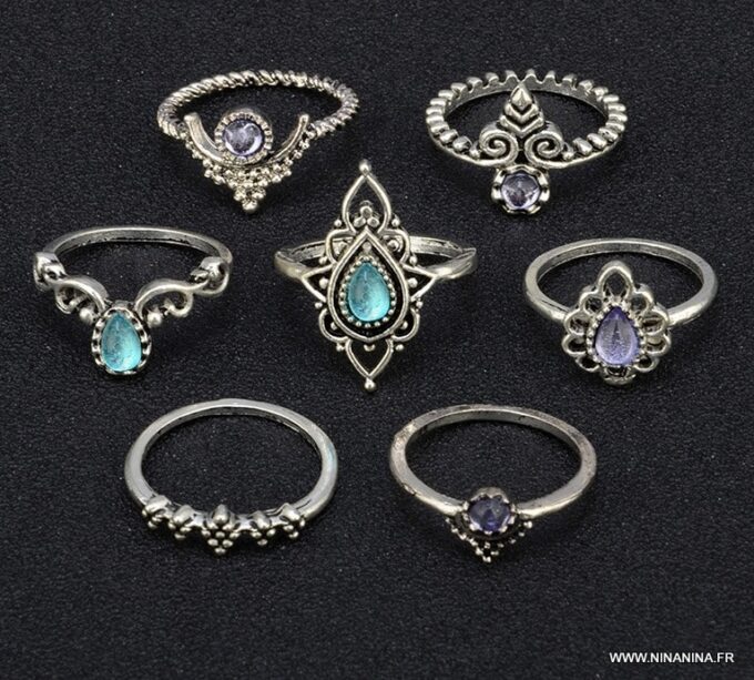Soyez le premier à laisser votre avis sur “Lot de 7 bagues bohème en métal argenté”