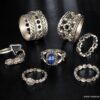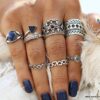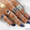 Lot de bagues argentées et bleu style bohème chic