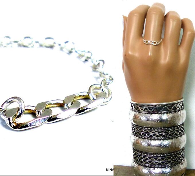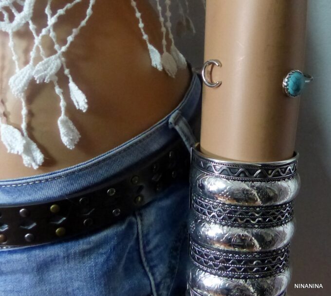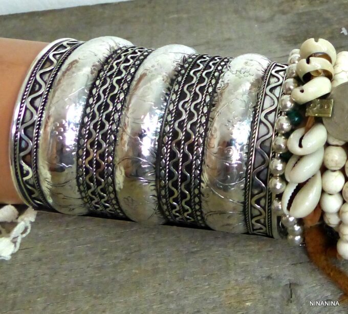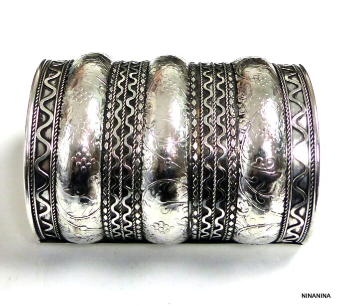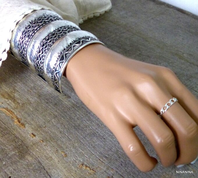 Bracelet gitan femme argenté manchette style turc