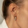 Les breloques sont de forme ronde et sont attachées aux créoles avec de petits anneaux dorés. Les boucles d’oreilles ont une fermeture à levier, ce qui les rend faciles à mettre et à enlever.