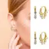 Illuminez votre visage avec ces Mini creoles plaqué or sur Argent pampille zirconium délicates et élégantes. Deux petits anneaux en Argent 925 plaqué Or à la belle brillance dorée. Les petites breloques attachées aux créoles sont en oxyde de zirconium, ajoutant une touche de scintillement à ces bijoux d’Oreilles.
