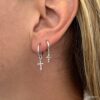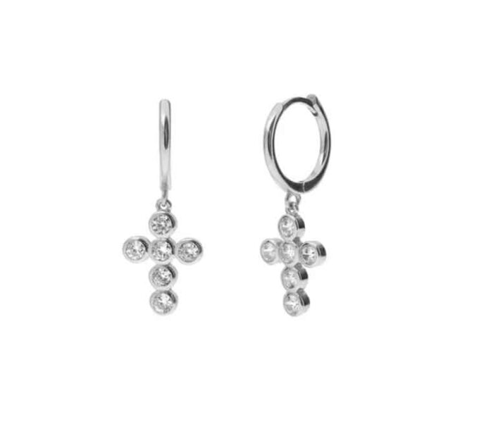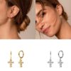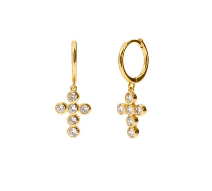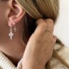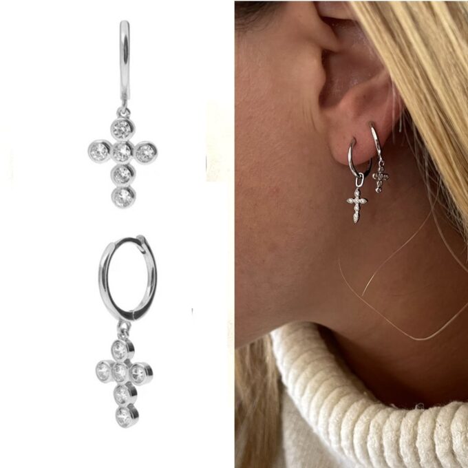 Bijou facile à porter au quotidien, quelle que soit votre tenue et en toutes circonstances, ces boucles d’oreilles créoles et leur pendentif en forme de croix toutes simples et discrètes se portent sur le premier, le second ou le troisième trou de l’oreille, seule ou par deux;