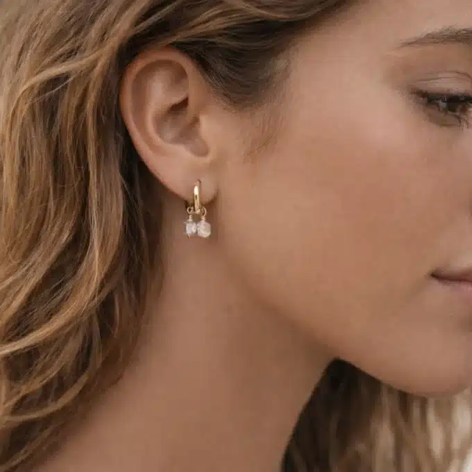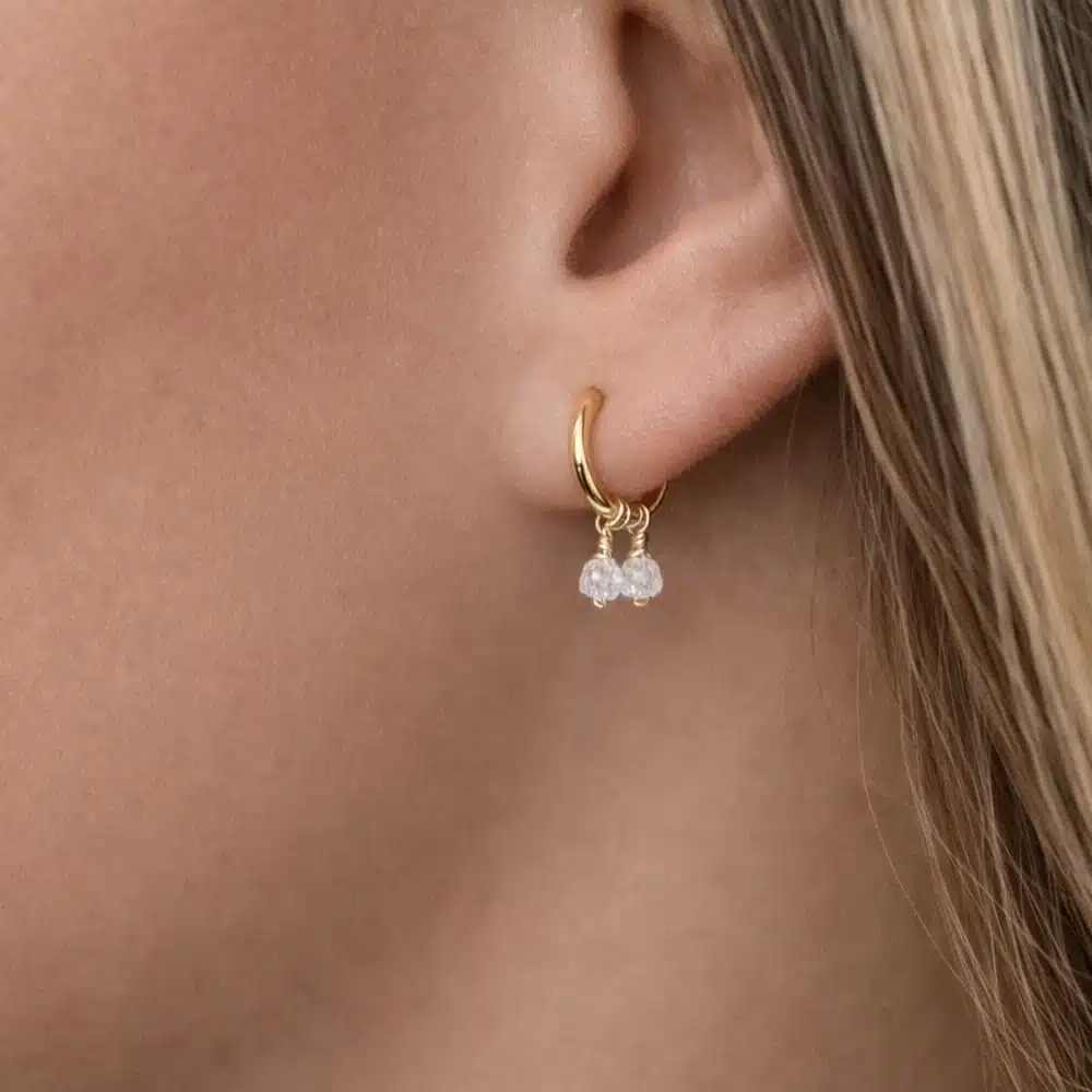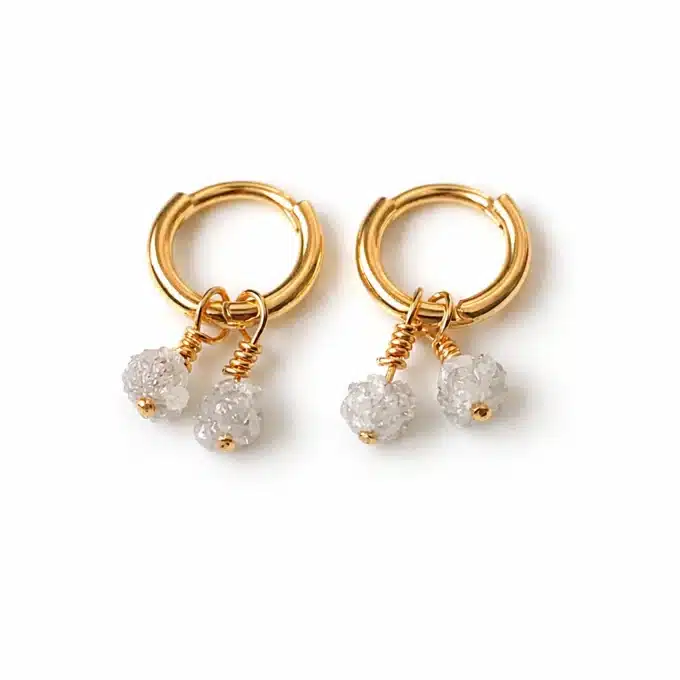 Des mini créoles élégantes et accessibles, qui associent la noblesse du diamant blanc brut à la douceur de l’or, pour un bijou en pierre précieuse intemporel et tendance.