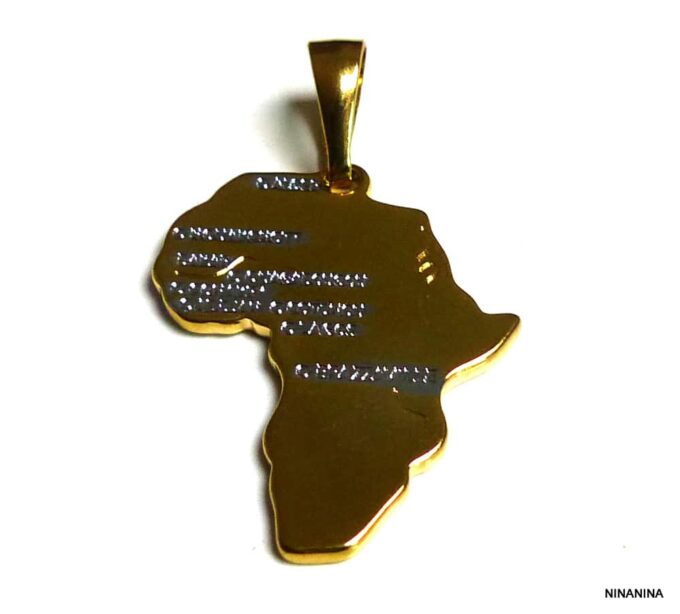ImprimerPendentif homme carte afrique acier inoxydable doré