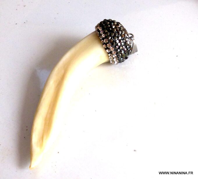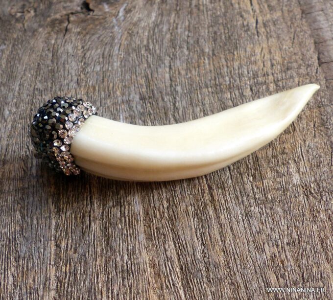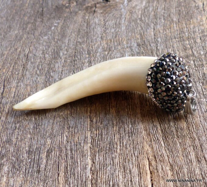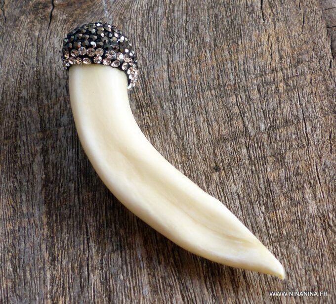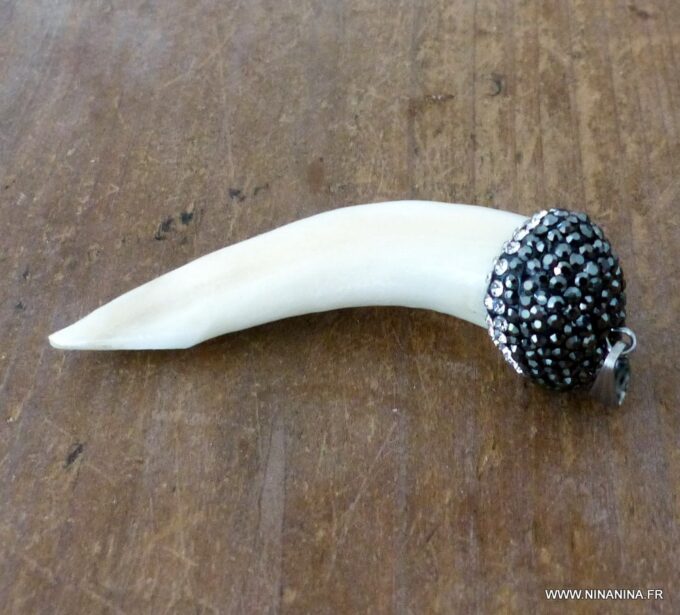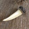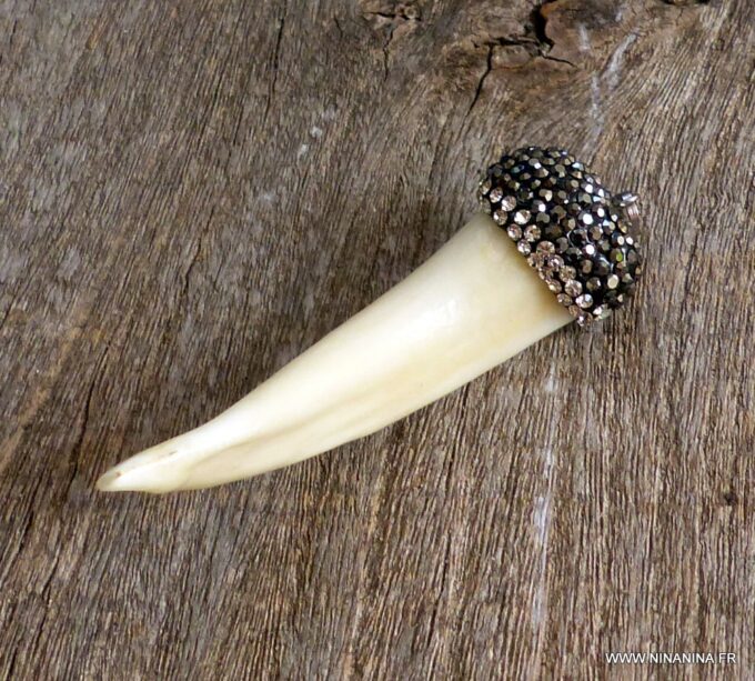 Pendentif dent de loup véritable ivoire  sertie de zircons noirs.