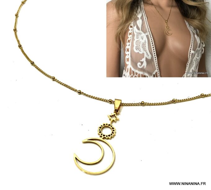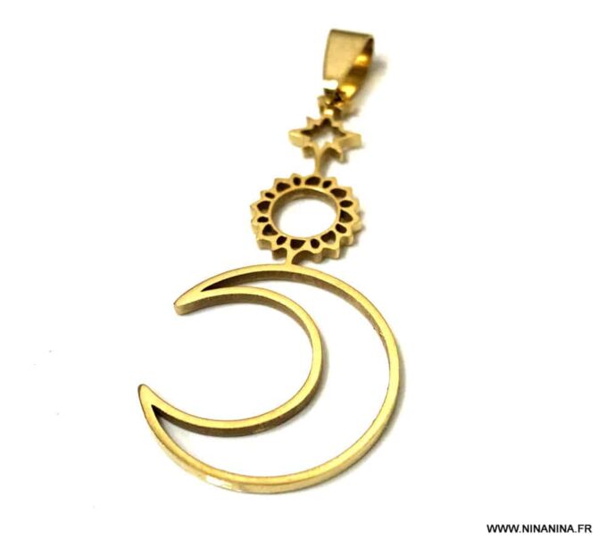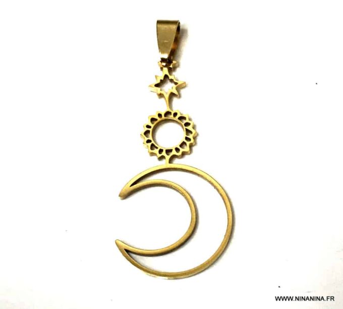 Pendentif lune soleil étoile acier or ou argent