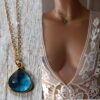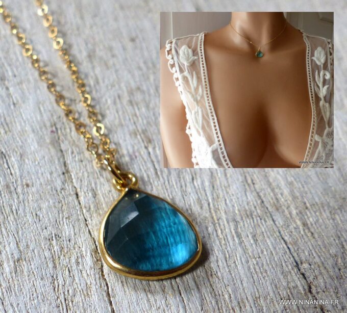 Le collier plaque or avec pendentif topaze bleue, un bijou recherché!