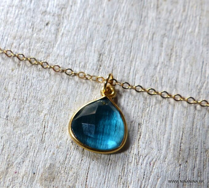 Ce Bijou topaze bleue est également disponible en argent 925 ou en argent 925 plaqué or 24 carats (vermeil) à selectionner dans le menu déroulant et également avec un pendentif en citrine ou en pierre de lune naturelle.
