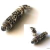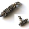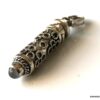 Le pendentif funéraire en argent est décoré à l’extérieur et contient une cavité creusée à remplir de cendres. On accède à la cavité intérieure de la pièce par le bouchon fileté. Ces deux éléments fonctionnent comme une vis pour accéder à l’intérieur du bijou et fermer la cavité.
