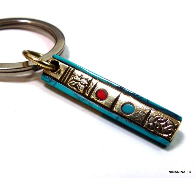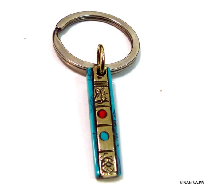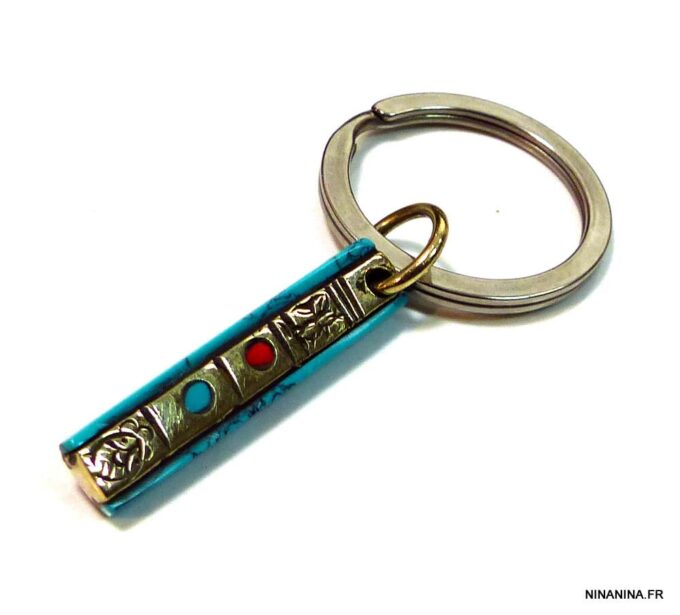 Vous êtes superstitieux et ne pouvez vous passer de vos petits fétiches, grigris et autres porte-bonheur ? Pour attirer la chance ou repousser le mauvais oeil, vous attirer les bonnes ondes et les énergies positives, découvrez ce porte clé porte bonheur homme amulette turquoise composé d’un pendentif amulette tibétaine en turquoise naturelle, serti au coeur d’une plaque de laiton gravée et de turquoise et corail, monté sur un anneau de porte clé en acier inoxydable argenté, sûr et facile d’utilisation.