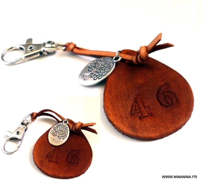 La personnalisation peut varier d’un porte-clé à l’autre et ne sera jamais aussi parfaite qu’une gravure automatique, c’est ce qui fait le charme du travail artisanal et de la pièce unique. La teinture est également réalisée à la main et peut présenter des légères differences d’un modèle à l’autre. Une petite différence de teinte ou de marquage ne pourra en aucun cas faire l’objet d’une réclamation recevable.