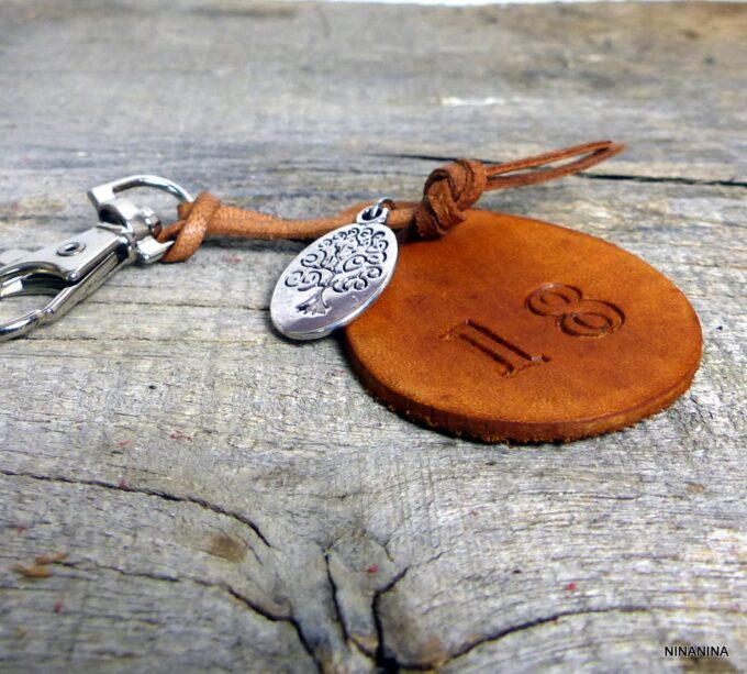 Faites en cadeau emprunt d’émotion avec ce Porte clé arbre de vie personnalisé pendentif cuir gravé et teint à la main constitué d’un pendentif en forme de goutte en cuir marron clair et d’un pendentif arbre de vie en métal argenté gravé « Made with love » coulissant sur un lacet de cuir et un fermoir mousqueton de porte-clé. Un porte clé personnalisable discret et raffiné avec une connotation religieuse et une symbolique porte-bonheur qui n’enlève rien à son charme, bien au contraire!
