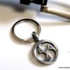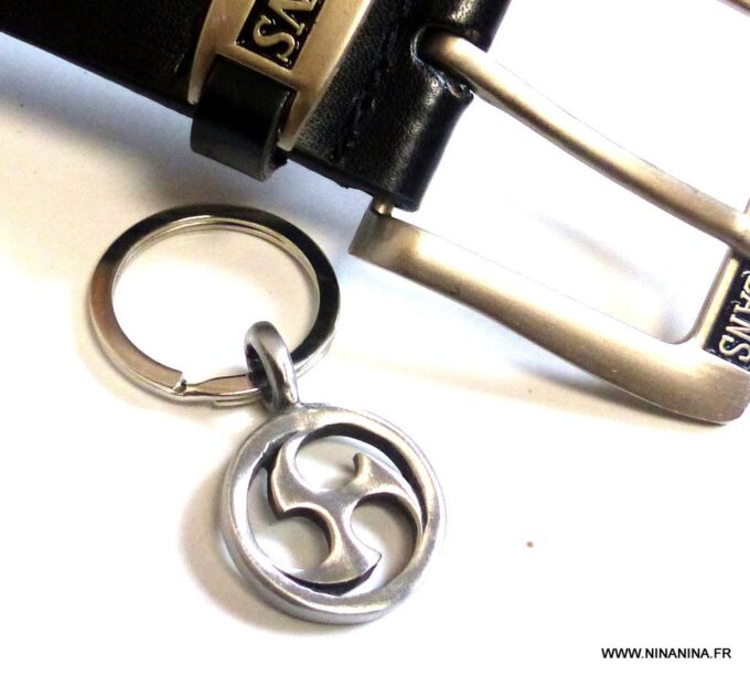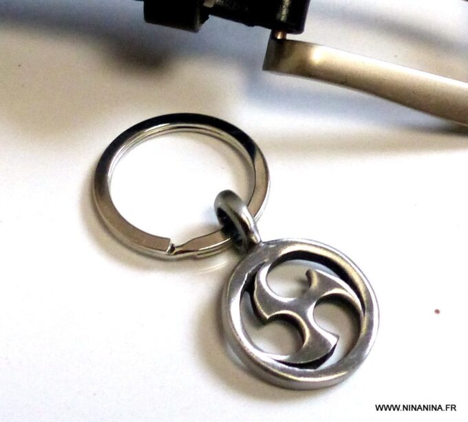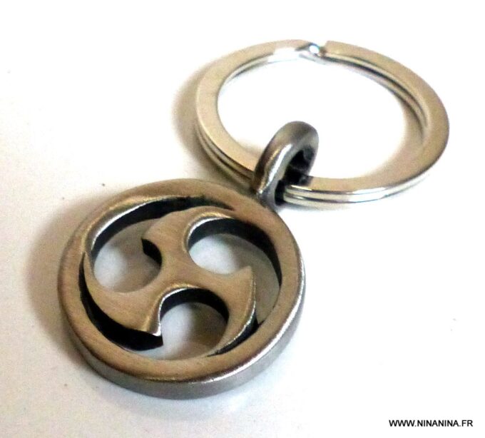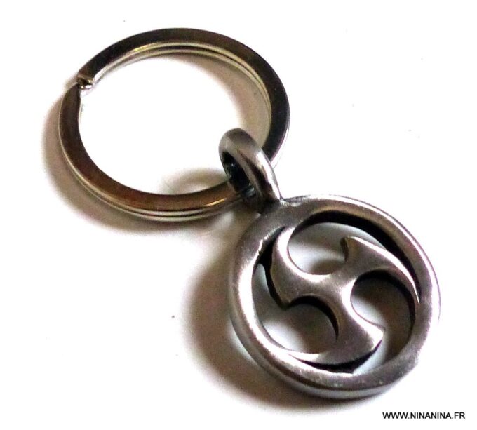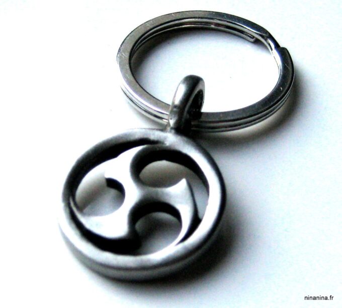 Porte clé homme pendentif triskel acier inoxydable composé d’un pendentif celtique triskel rond en acier inoxydable monté sur un anneau de porte-clé en métal argenté.