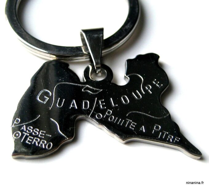 Unique en son genre grâce à son motif en forme de carte de Guadeloupe, ce porte clé homme ou femme et son pendentif Guadeloupe en acier inoxydable est l’accessoire idéal pour afficher ses origines avec fierté! A porter en guise de porte-bonheur, il vous suivra partout où vous irez et vous ne pourrez plus vous en passer!