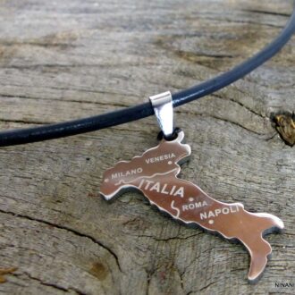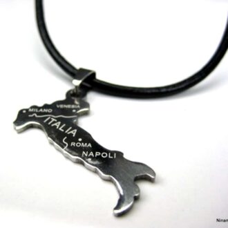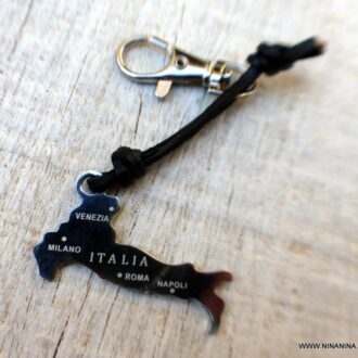 Porte clé Italie pendentif carte Acier inoxydable argenté composé d’un pendentif ITALIE en acier inoxydable monté sur un anneau de porte-clé en acier.