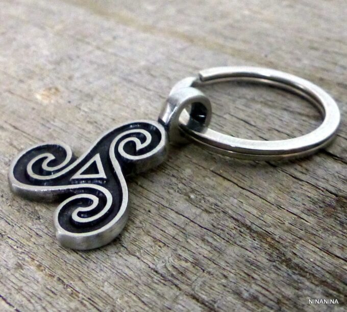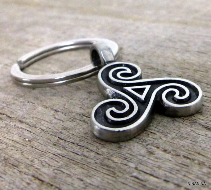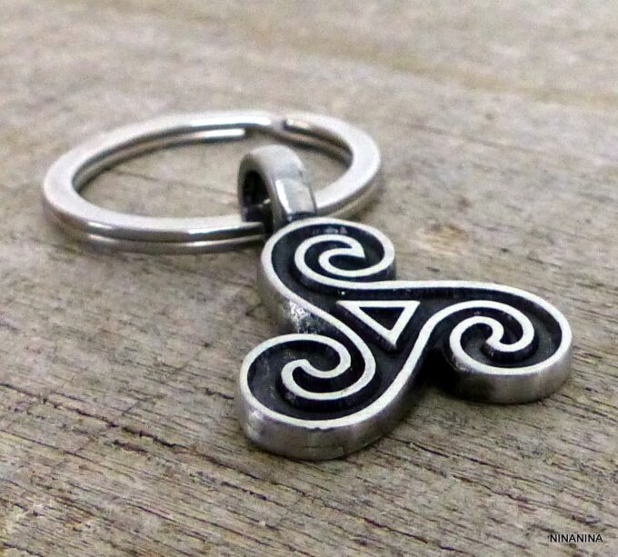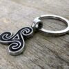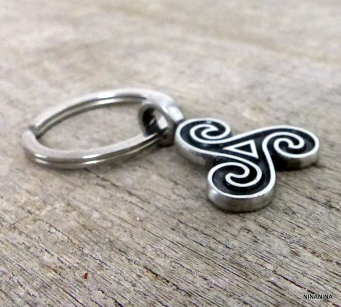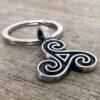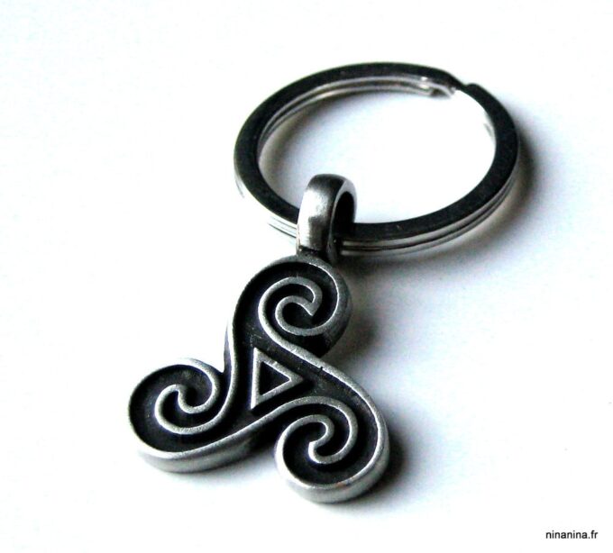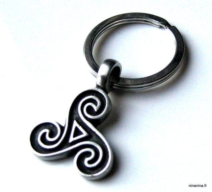 Porte clé triskell Acier inoxydable pour homme composé d’un pendentif triskel monté sur un anneau de porte-clé en acier inoxydable