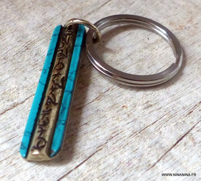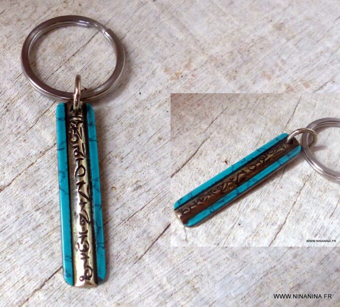 Vous êtes superstitieux et ne pouvez vous passer de vos petits fétiches, grigris et autres porte-bonheur ? Pour attirer la chance ou repousser le mauvais oeil, vous attirer les bonnes ondes et les énergies positives, découvrez ce Porte clé porte bonheur homme amulette bouddhiste composé d’un pendentif amulette tibétaine en turquoise naturelle, serti au coeur d’une plaque de laiton gravée d’un mantra Bouddhiste et de turquoise et corail, monté sur un anneau de porte clé en acier inoxydable argenté, sûr et facile d’utilisation.