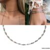 Simplicité, classe et raffinement sont au rendez-vous avec ce Ras de cou acier inoxydable femme motif losange. La finesse et la classe des petits losanges ne sera que récompensée, par la beauté de votre jolie peau halée! Un collier boheme chic que vous adorerez porter à la plage aussi bien qu’au bureau sur votre peau bronzée.