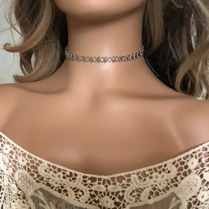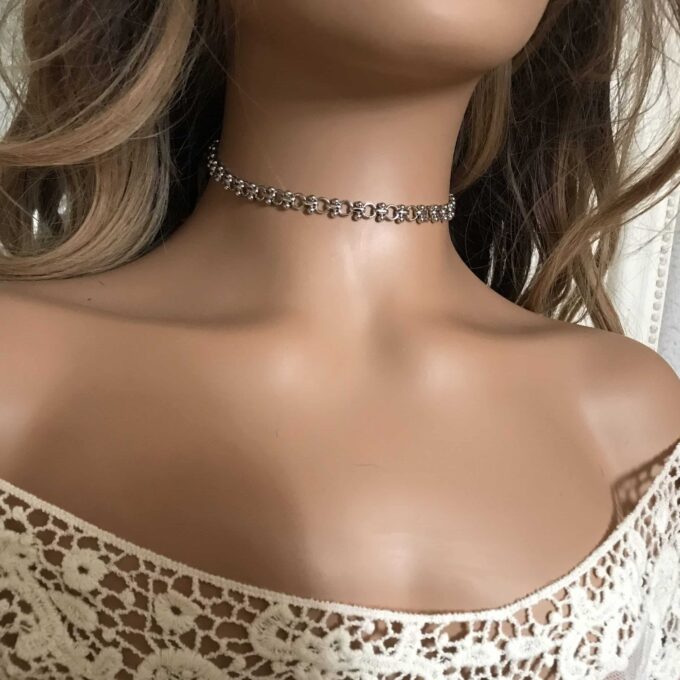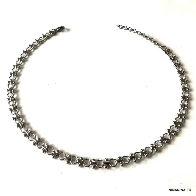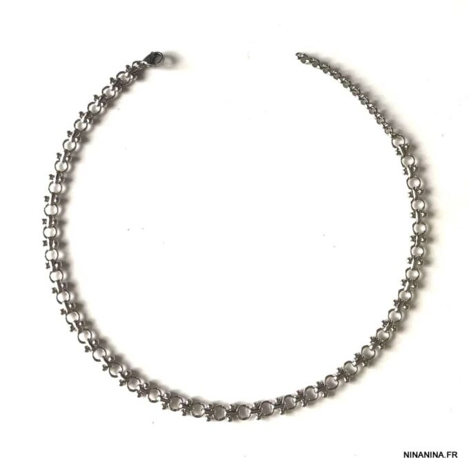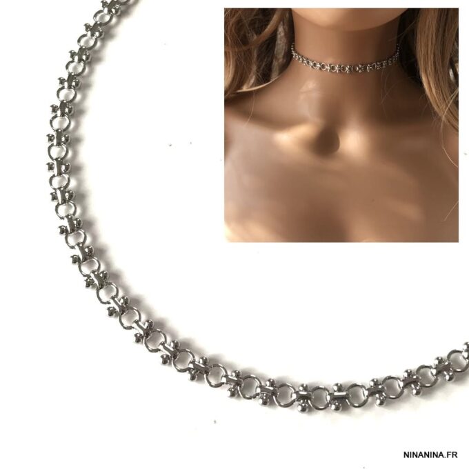 Craquez pour ce splendide Ras de cou femme chaine grosse maille argenté à la maille originale en laiton plaqué rhodium. Ce Collier ras du cou, aussi appelé collier ras du cou, est terminé par un fermoir mousqueton, sûr et facile d’utilisation et d’une chainette de réglage.