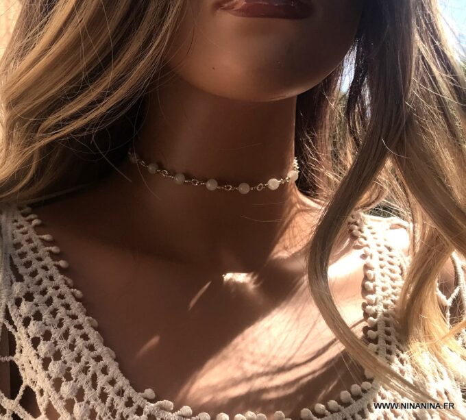 Les bijoux en pierres fines, appelées aussi pierres semi précieuses sont très tendance, cette année. Ils accompagnent vos humeurs et vous habillent en parfaite harmonie avec votre personnalité, quelque soit votre look. Vous apprécierez ce côté si précieux et rare d’un ras de cou argent qui s’est emparé de pierres de qualité !