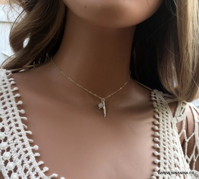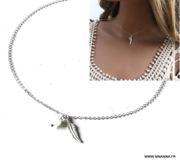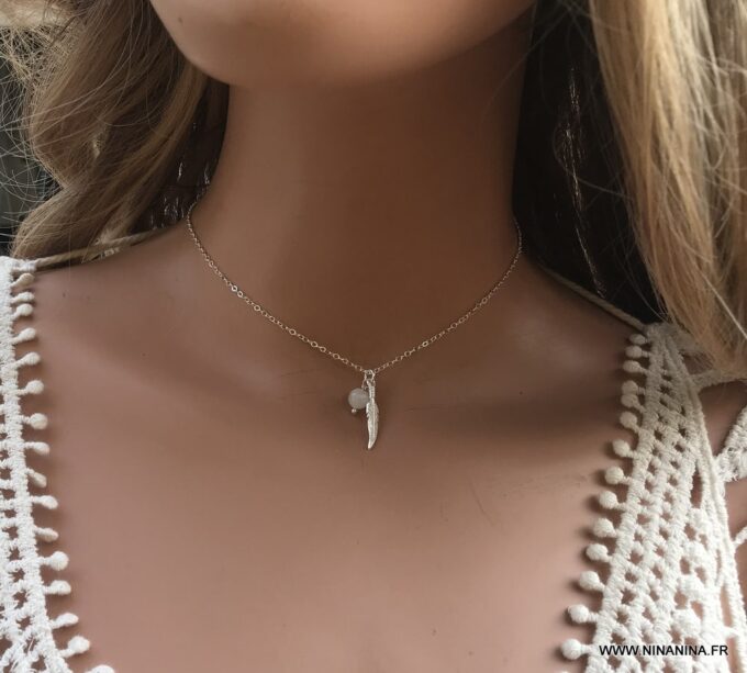 Délicatesse, finesse et volupté vous habilleront avec ce collier Ras de cou plume Argent et pierre de lune femme composé d’un pendentif plume argent 925 monté sur une Chaîne en Argent 925 maille forçat. Ce collier chaine argent 925 est terminé par un délicat fermoir mousqueton en argent 925, facile d’utilisation et une chainette de réglage de 5cm. Tout simplement exquis!