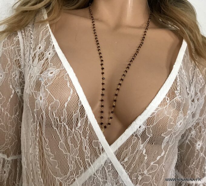 Portez ce joli sautoir noir femme, seul pour un look minimaliste ou en superposition avec d’autres colliers sautoirs Ninanina.