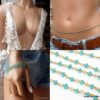 Vous apprécierez la finesse de sa ligne, le beau bleu turquoise qu’il dégage, et les petites pierres bleues qui apportent une petite touche soignée. Le côté pratique, c’est qu’il est réglable en longueur, grâce à une petite chainette d’ajustement, et qu’il peut être également utilisé afin de porter un pendentif.
