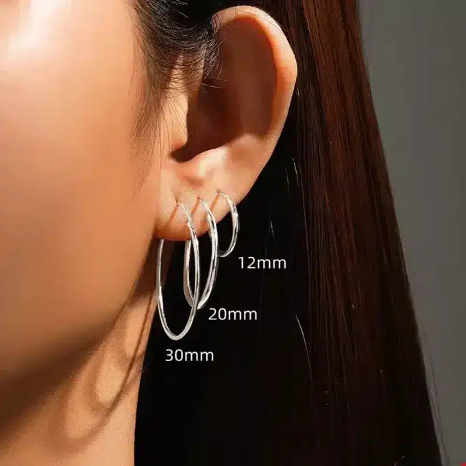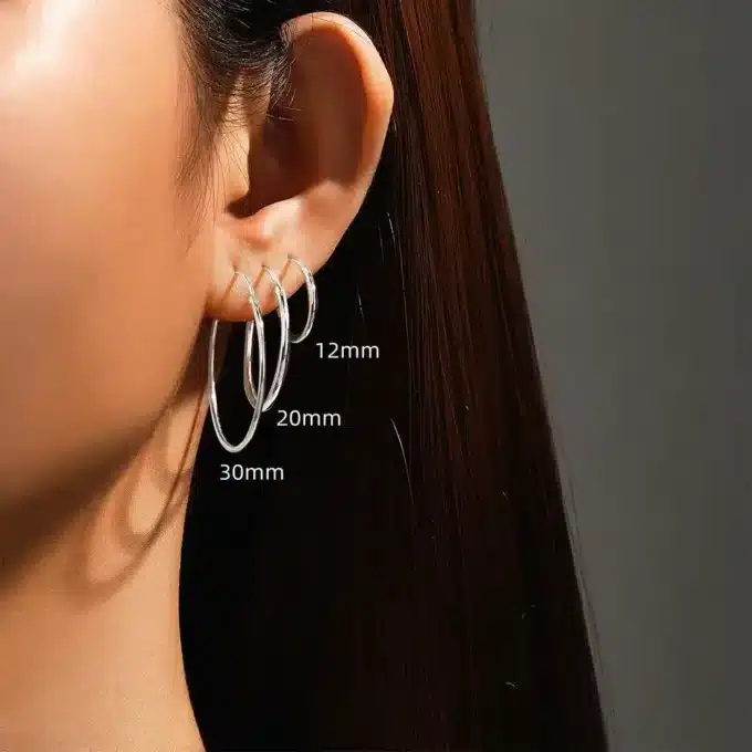 Soyez à la pointe de la mode avec ce splendide Set boucles d’oreilles argent 3 créoles argent minimalistes original et tendance! Cet ensemble de créoles en argent 925 est composé de trois anneaux minimalistes, de trois diamètres différents : 12-20-30 mm à porter sur les trois trous percés d’une d’oreille.