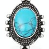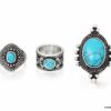 Lot de 3 bagues bohème bleu turquoise et métal argenté